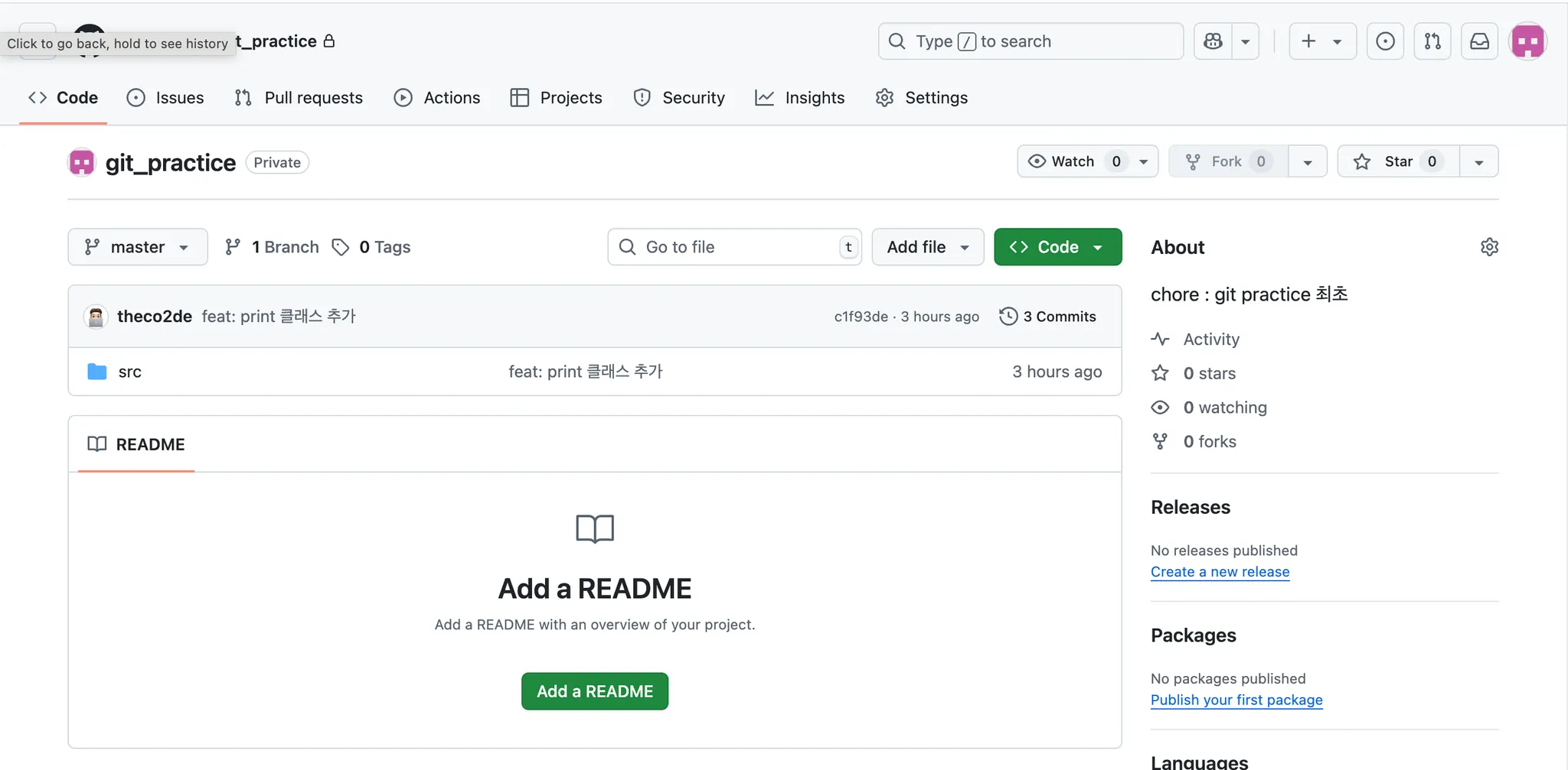 이제 프로젝트를 Github(원격 저장소)에 올려볼게요.