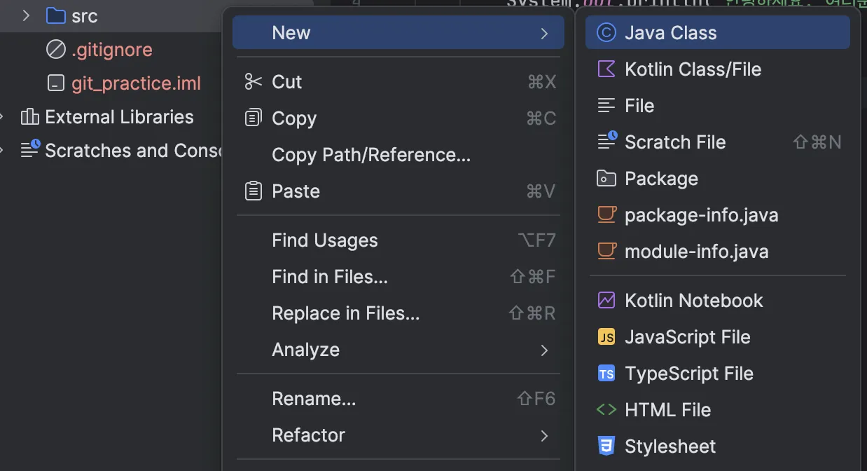 우선 새로운 Project를 만들고 git을 초기화 시켜보겠습니다.