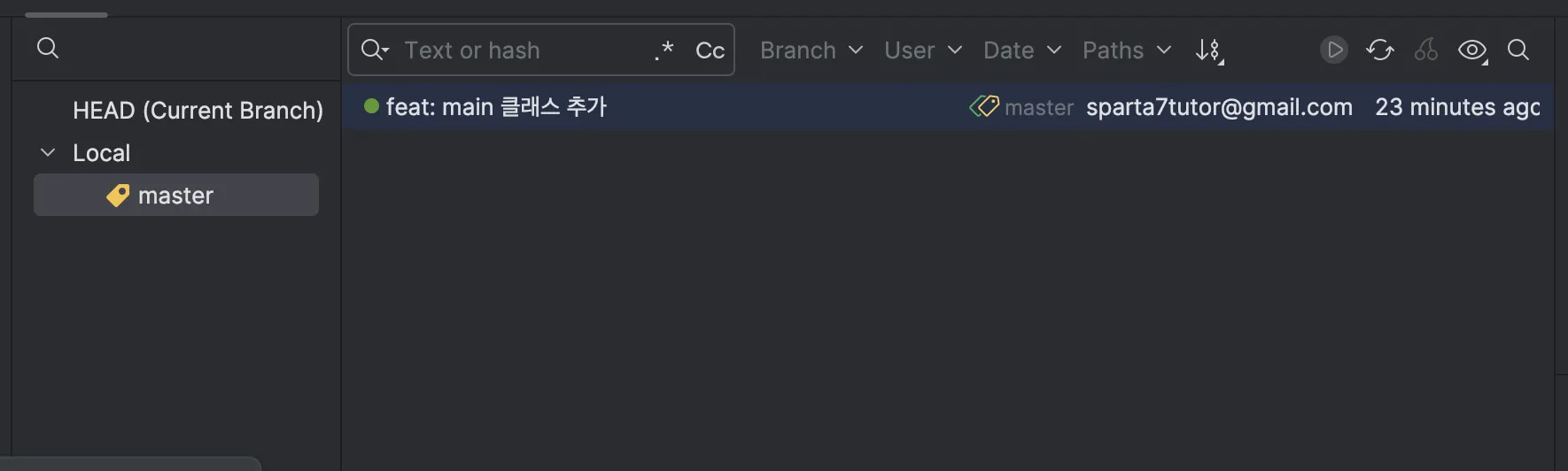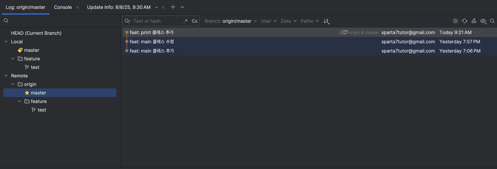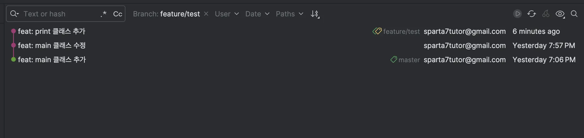 앞선 PR로 GitHub에 master branch에 feature/test branch 소스가 병합되었습니다.