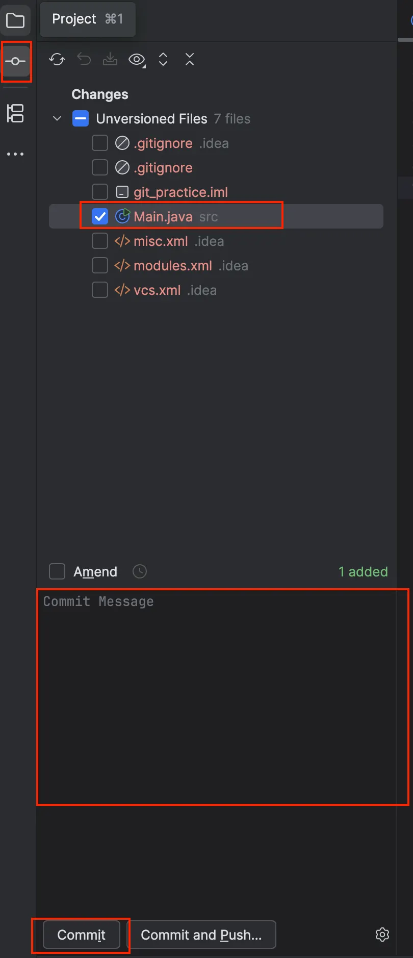 intellij를 통한 Commit 수행 시 add & commit이 동시에 수행됩니다.