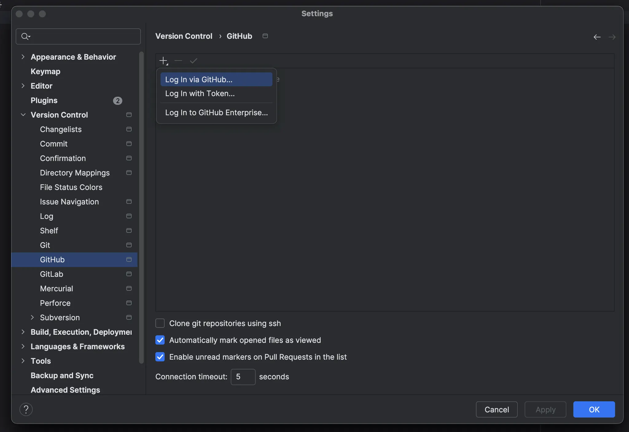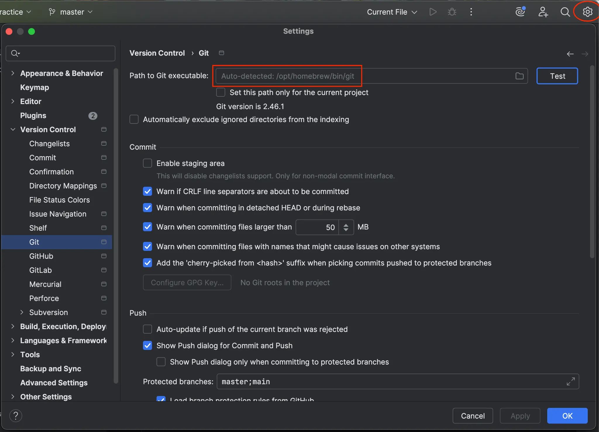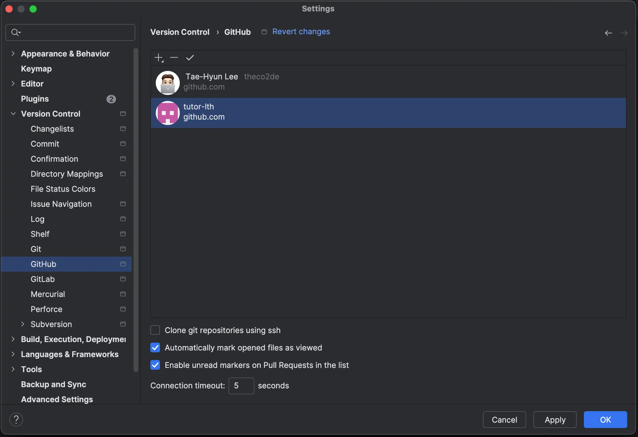 Login success 후 intellij로 돌아오면 github 계정과 intellij가 연결된 것을 확인할 수 있습니다.