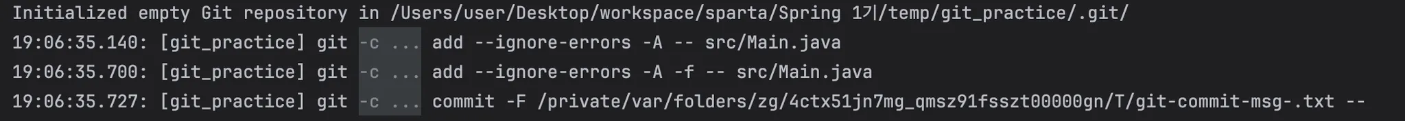 commit 실행 시 아래와 같은 명령어가 실행됩니다.
