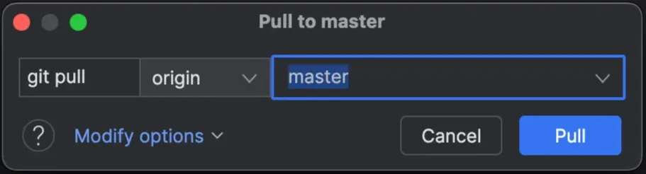 commit 목록을 확인 후 Pull실행하여 local branch와 병합합니다. origin(remote) → master(local)