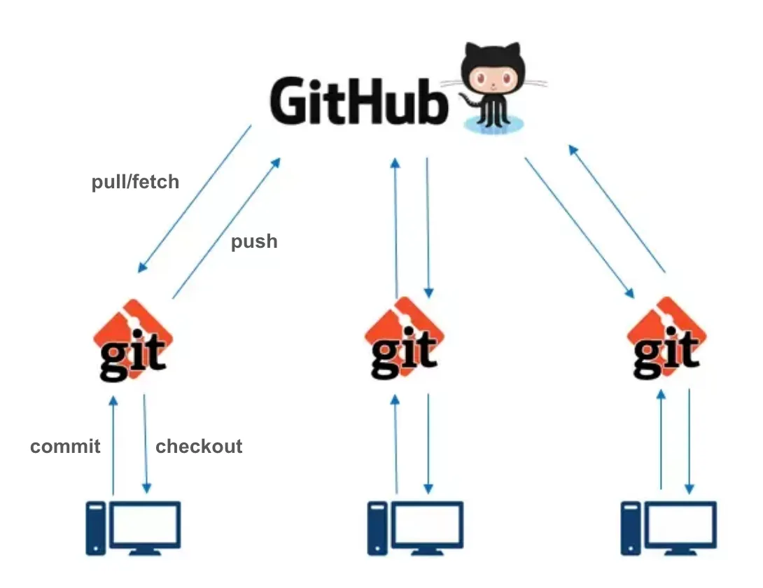 반면 DVCS는 내 PC안에 로컬 저장소를 가집니다. 그리고 commit 등의 모든 작업이 내 로컬 PC에서 발생합니다. 그리고 push, pull(fetch)를 통해 원격 저장소와 동기화를 합니다. 여기서 동기화 작업 때문에 항상 git이 어려운 이유입니다.