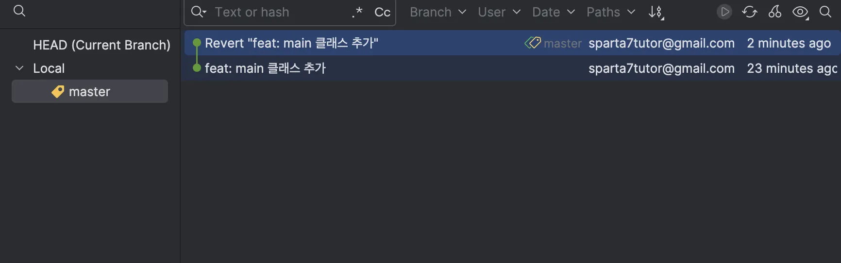 revert 은 작업한 이전 commit으로 되돌리기 위한 명령어 입니다.